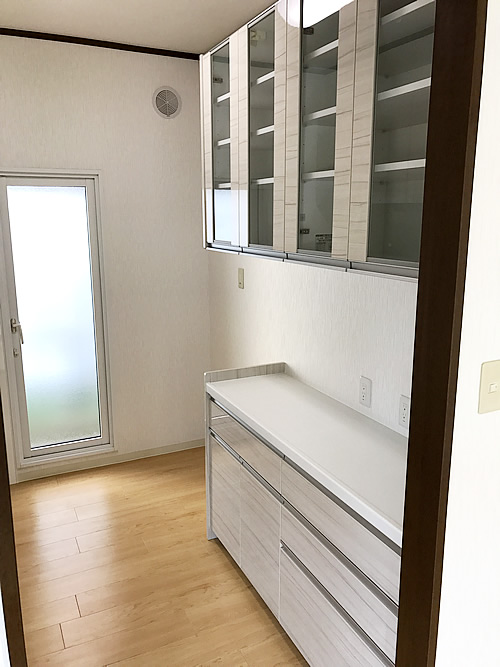 【リフォーム箇所】キッチン交換、カップボード(食器棚)新設