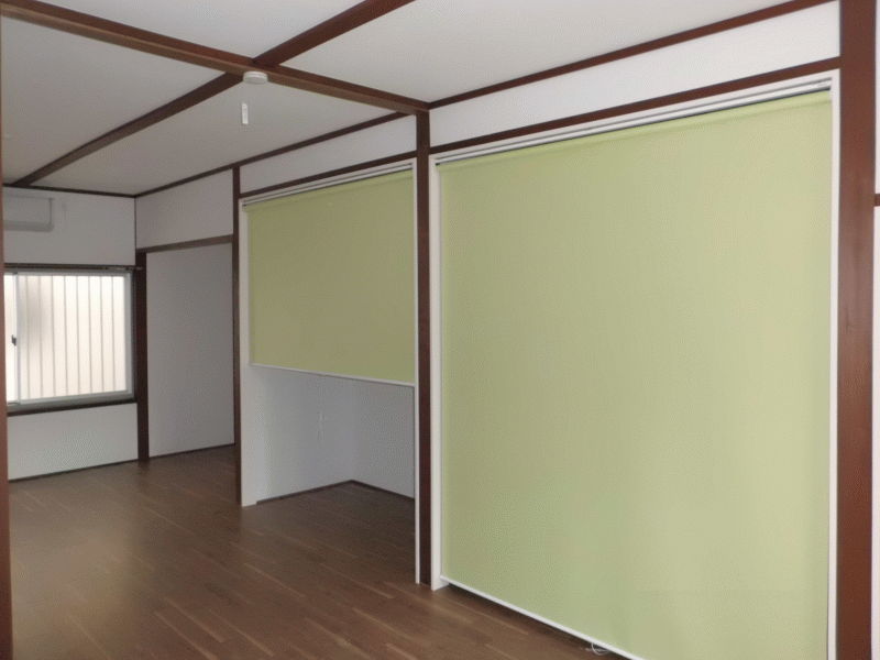 床とキッチンの色を合わせ、その中で扉はパステルグリーンでアクセントをつけました。隣の和室との壁を撤去することでLDKを拡張し、キッチンも大きめのものを設置しました。